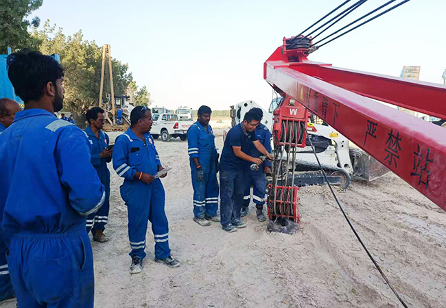 三臺吊管機成功交付客戶后,公司精心選派經(jīng)驗豐富的工程師遠赴海外進行指導和培訓工作。服務人員憑借扎實的專業(yè)知識、豐富的實踐經(jīng)驗向客戶詳細介紹了吊管機的操作原理、維護要點以及組裝安裝注意事項等多方面內容。在培訓過程中,工程師對客戶提出的每一個問題都給予了耐心解答,通過實際操作演示、理論講解相結合的方式,讓客戶能夠迅速掌握吊管機相關知識和技能。